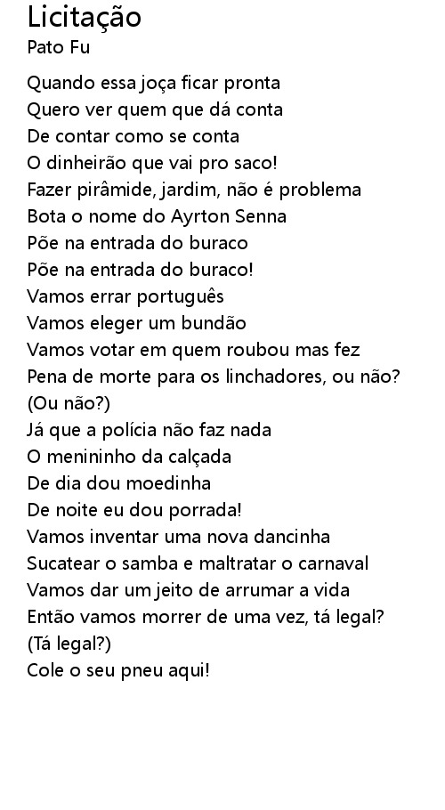 | Song | Licitação |