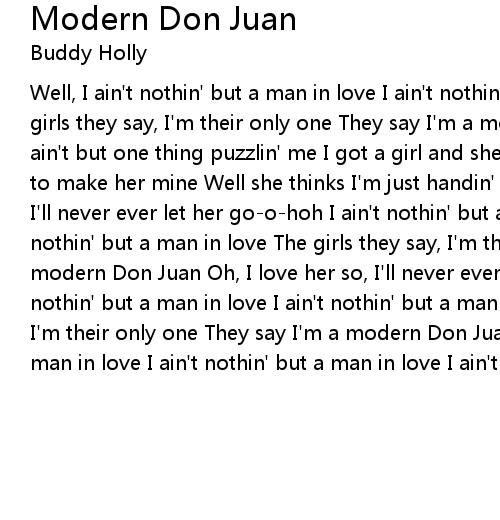 Well, I ain't nothin' but a man in love I ain't nothin' but a man in love The girls they say, I'm their only one They say I'm a modern Don Juan Well there ain't but one thing puzzlin' me I got a girl and she can't see That I want only to make her mine Well she thinks I'm just handin' her a line Oh, I love her so, I'll never ever let her go-o-hoh I ain't nothin' but a man in love I ain't nothin' but a man in love The girls they say, I'm their only one They say I'm a modern Don Juan Oh, I love her so, I'll never ever let her go-o-hoh I ain't nothin' but a man in love I ain't nothin' but a man in love The girls they say, I'm their only one They say I'm a modern Don Juan Well, I ain't nothin' but a man in love I ain't nothin' but a man in love I ain't nothin' but a man in love |