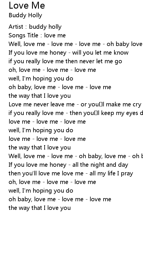 | Well, love me - love me - oh baby, love me - oh baby love me - baby love me do | |