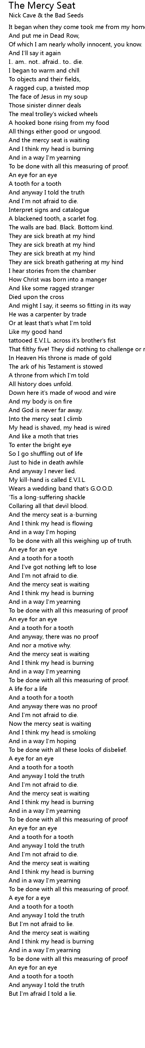 Into the mercy seat I climb |