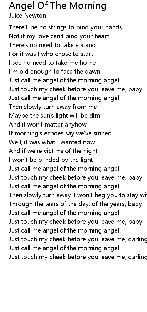 Just call me angel of the morning angel |