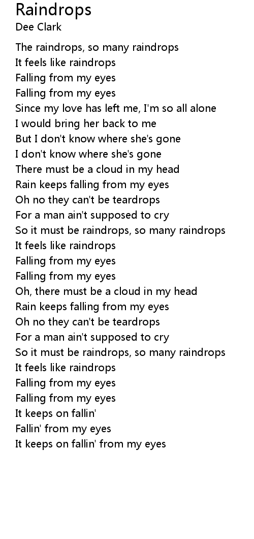 So it must be raindrops, so many raindrops |
