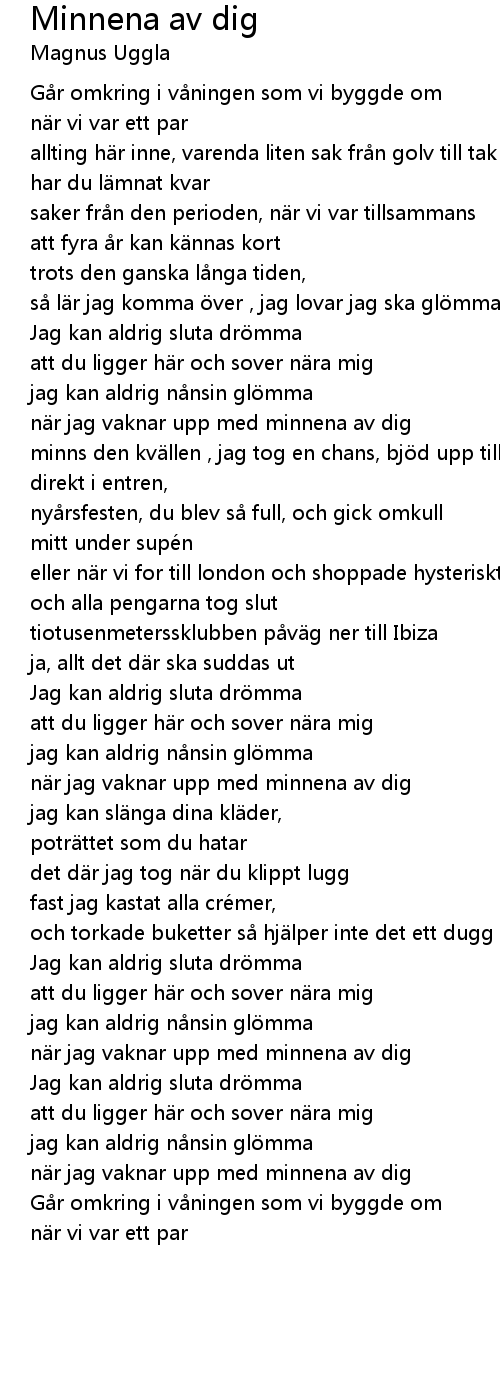 | så lär jag komma över , jag lovar jag ska glömma bort | |