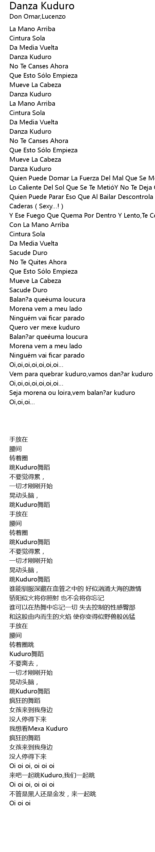 | [01:31.56] | Vem para quebrar kuduro,vamos dan?ar kuduro |