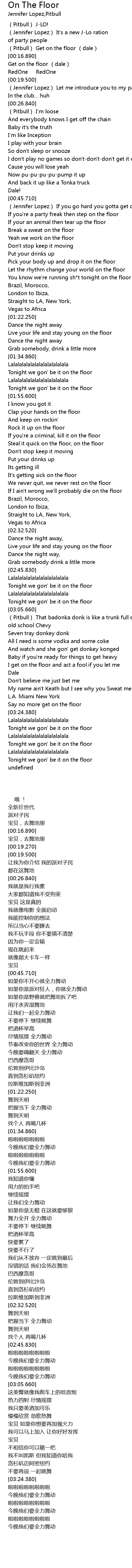 | [00:46.010] | Jennifer Lopez If you go hard you gotta get on the floor |