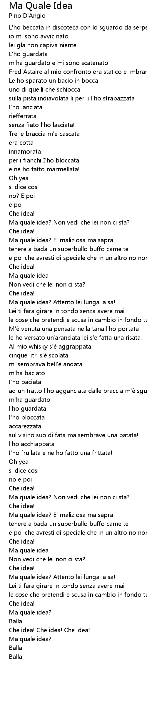 | Song | Ma Quale Idea |