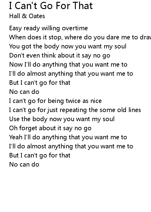 But I can't go for that |