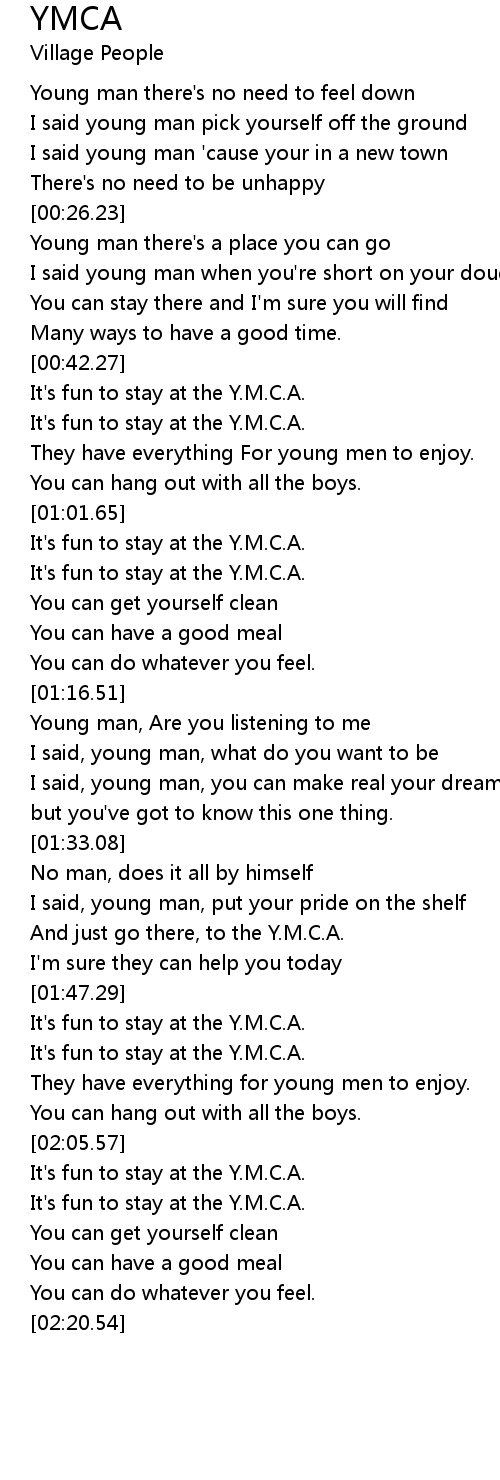 [02:10.14] It's fun to stay at the Y.M.C.A.