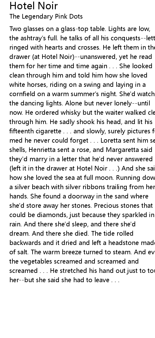 (left it in the drawer at Hotel Noir . . .) And she said |