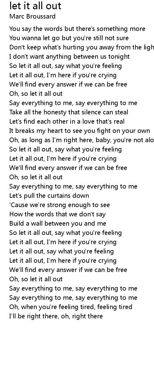 So let it all out, say what you're feeling |