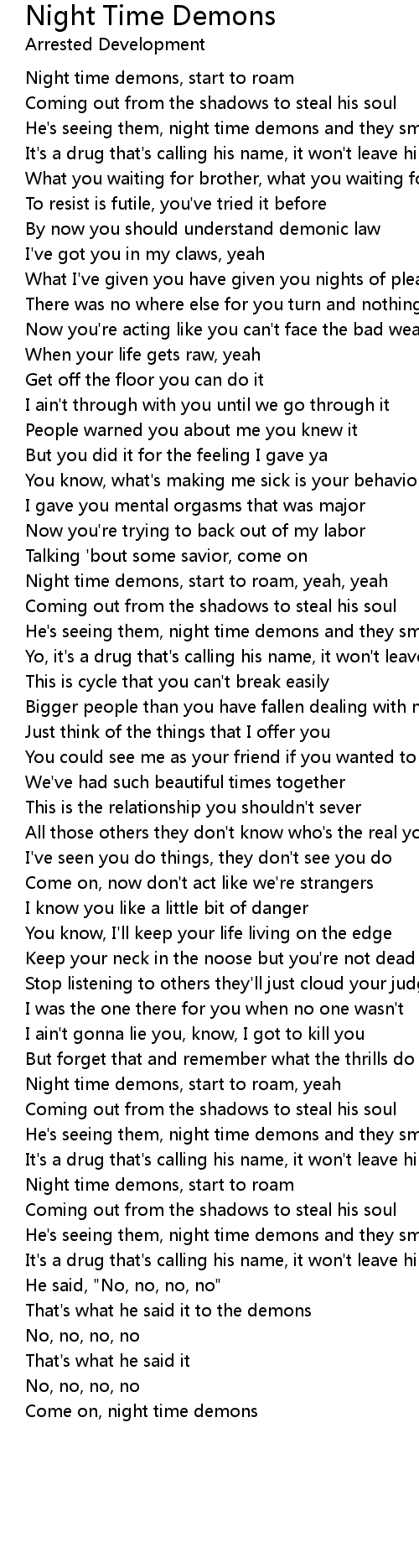 He's seeing them, night time demons and they smell his jaws, yeah |
