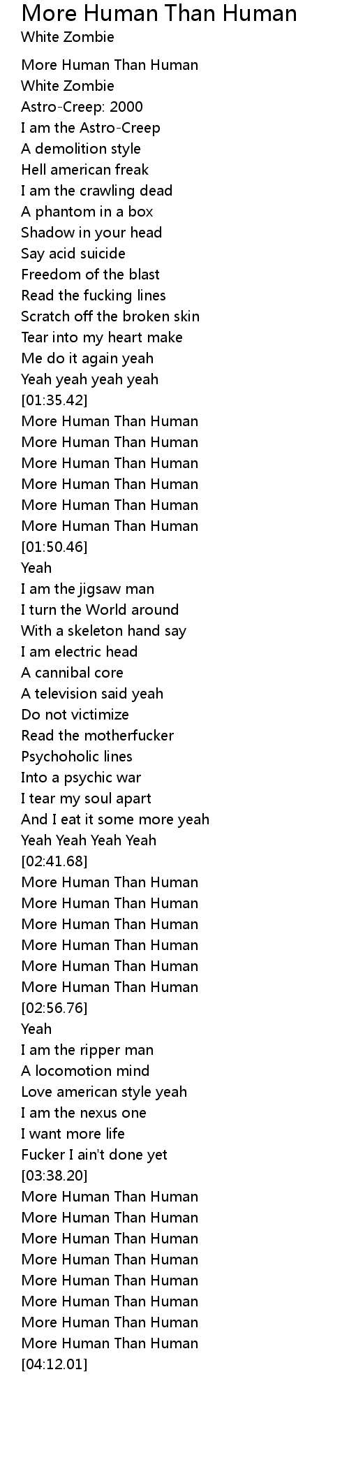 | [03:45.12] | More Human Than Human |