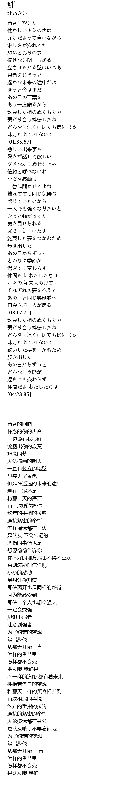 絆 ban Lyrics
