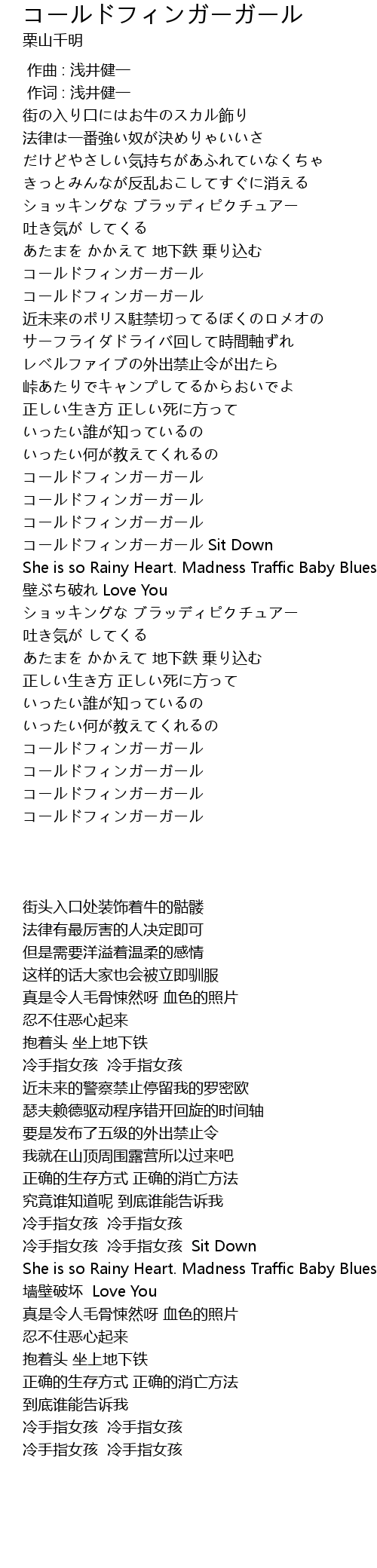 | [01:52.000] | コールドフィンガーガール コールドフィンガーガール Sit Down |