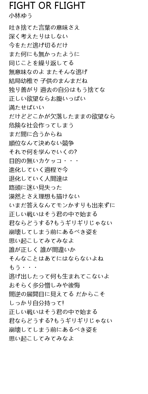 | Song | FIGHT OR FLIGHT |