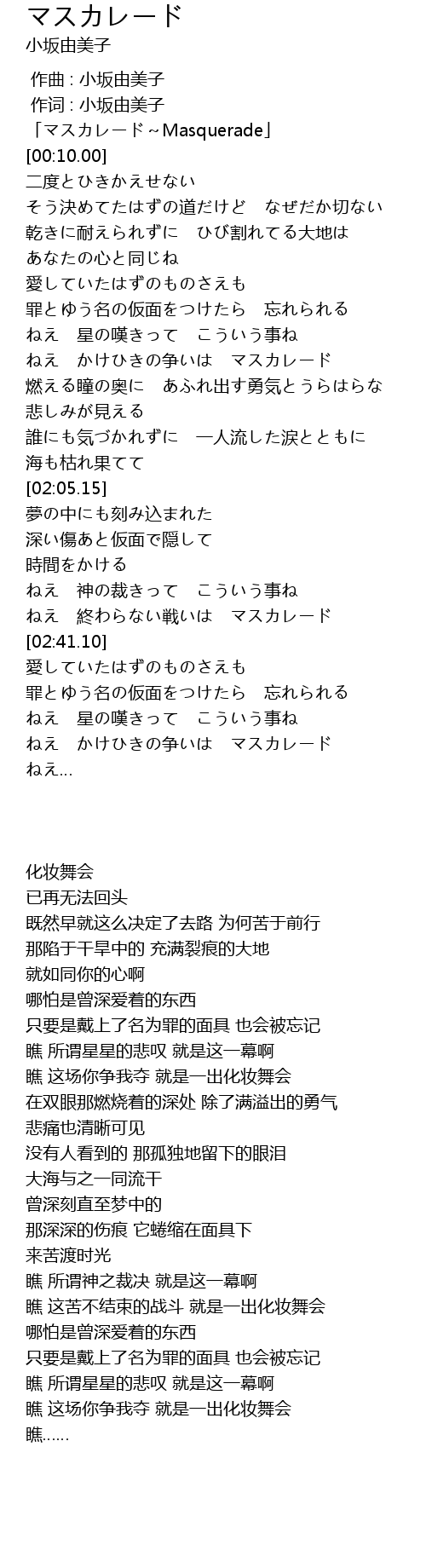 | [00:00.00] | 「マスカレード~Masquerade」 |