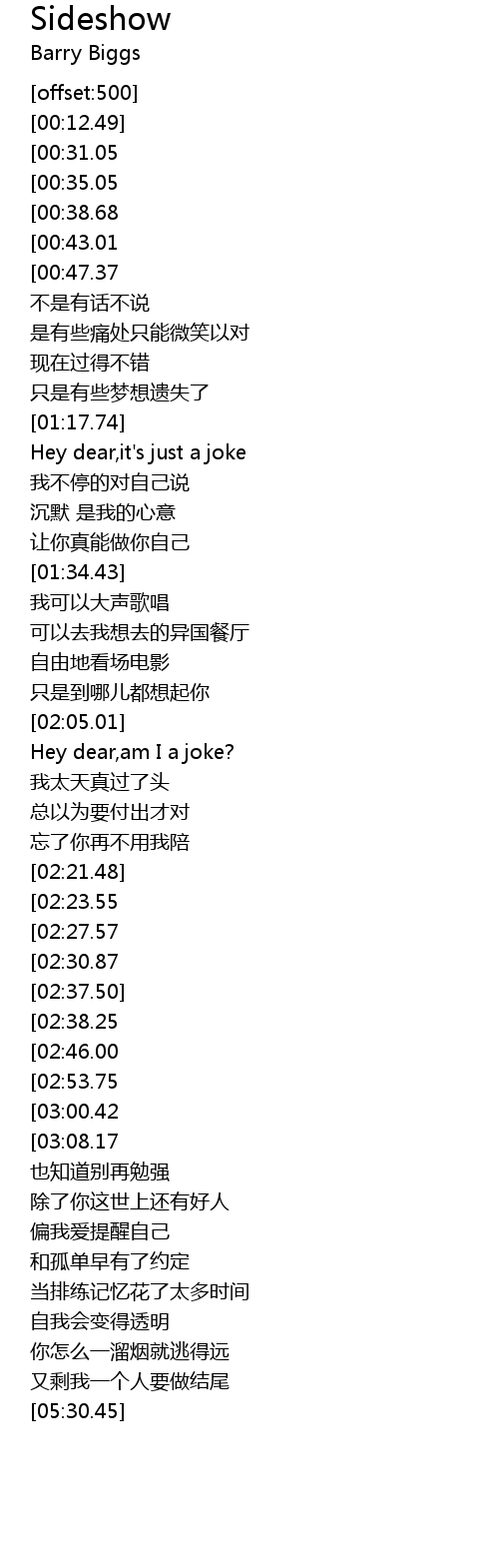 | [03:55.33][00:31.05] | Hey dear,it's just a joke |