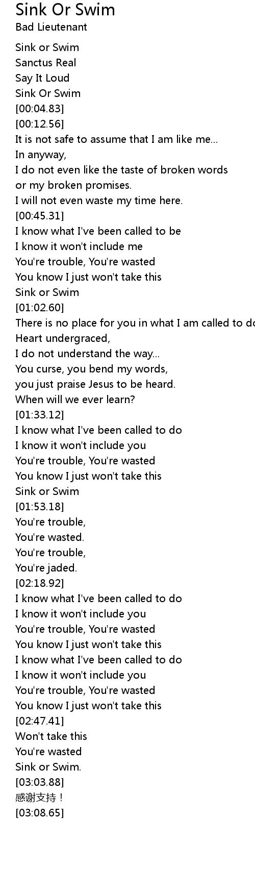 | [01:00.30] | Sink or Swim |