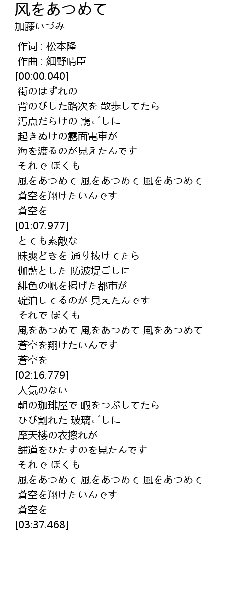 風をあつめて 風をあつめて 風をあつめて |