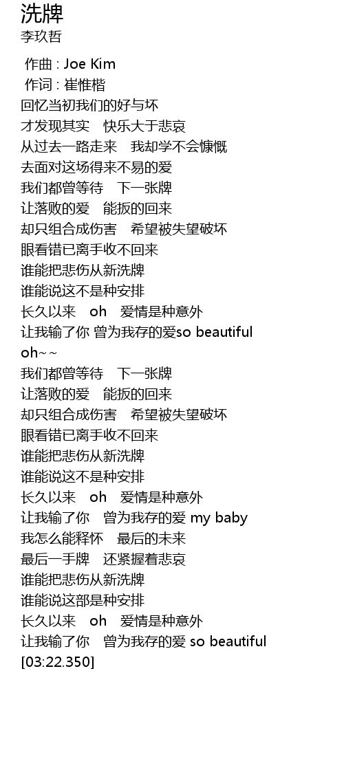 | [03:12.630] | 让我输了你 曾为我存的爱 so beautiful |