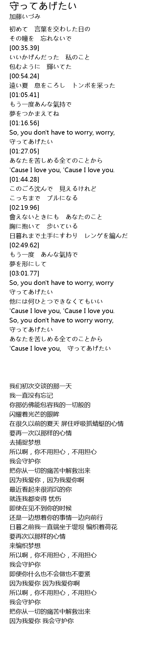 | [03:43.95] | 'Cause I love you, 守ってあげたい |