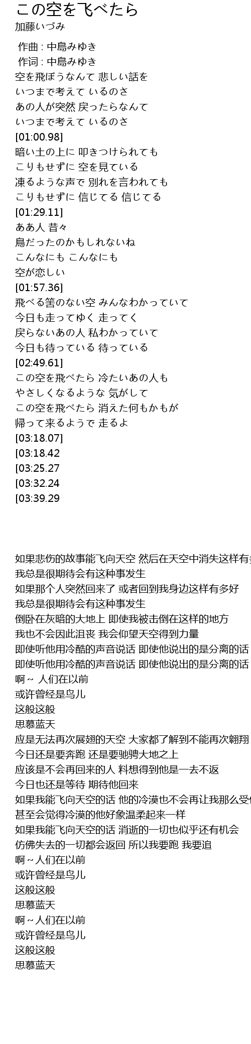 この空を飛べたら 冷たいあの人も |
