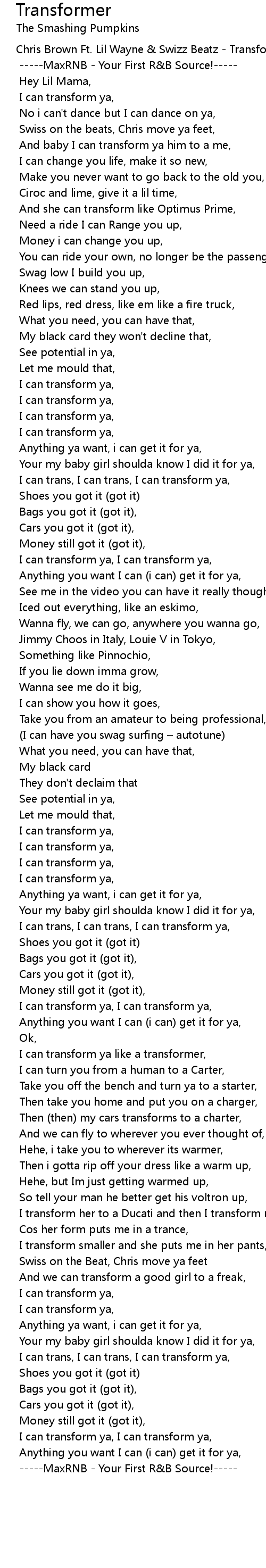 | Chris Brown Ft. Lil Wayne Swizz Beatz Transformer | |