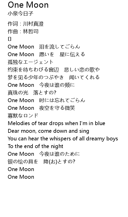 | One Moon jīn yè shuí | |