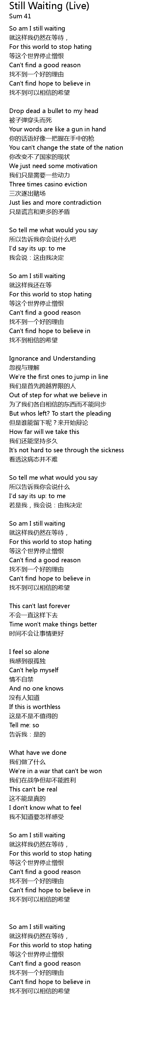| 就这样我仍然在等待, | |