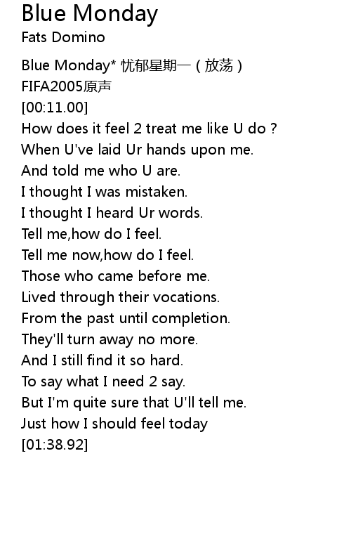 | [00:10.00] | Blue Monday* 忧郁星期一(放荡) |
