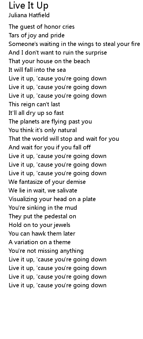Live it up, 'cause you're going down |