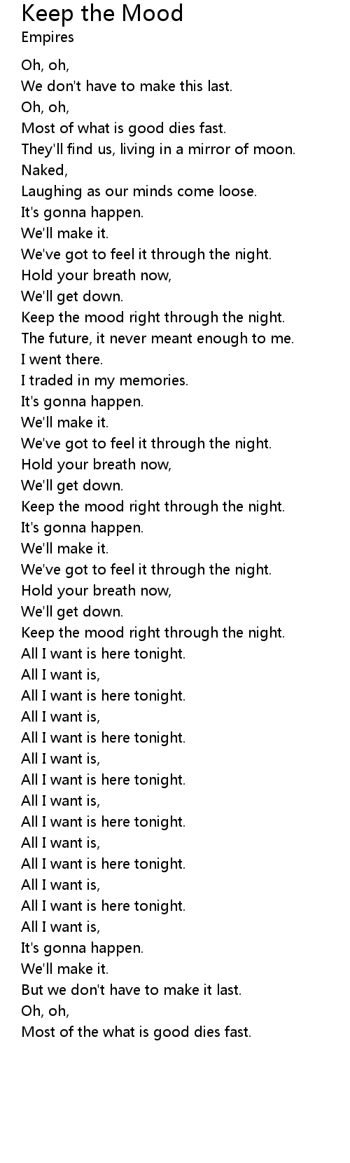 | All I want is here tonight. | |