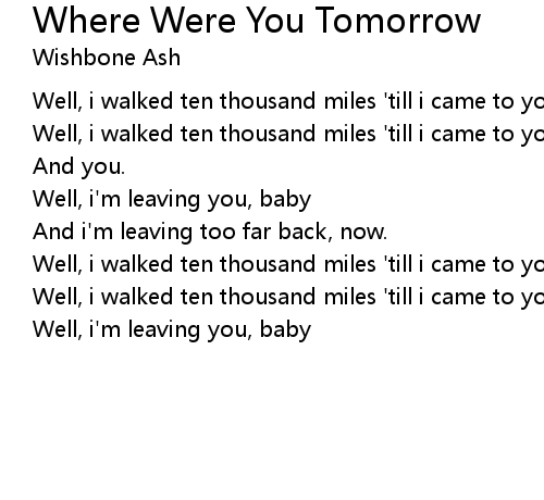 | Song | Where Were You Tomorrow |