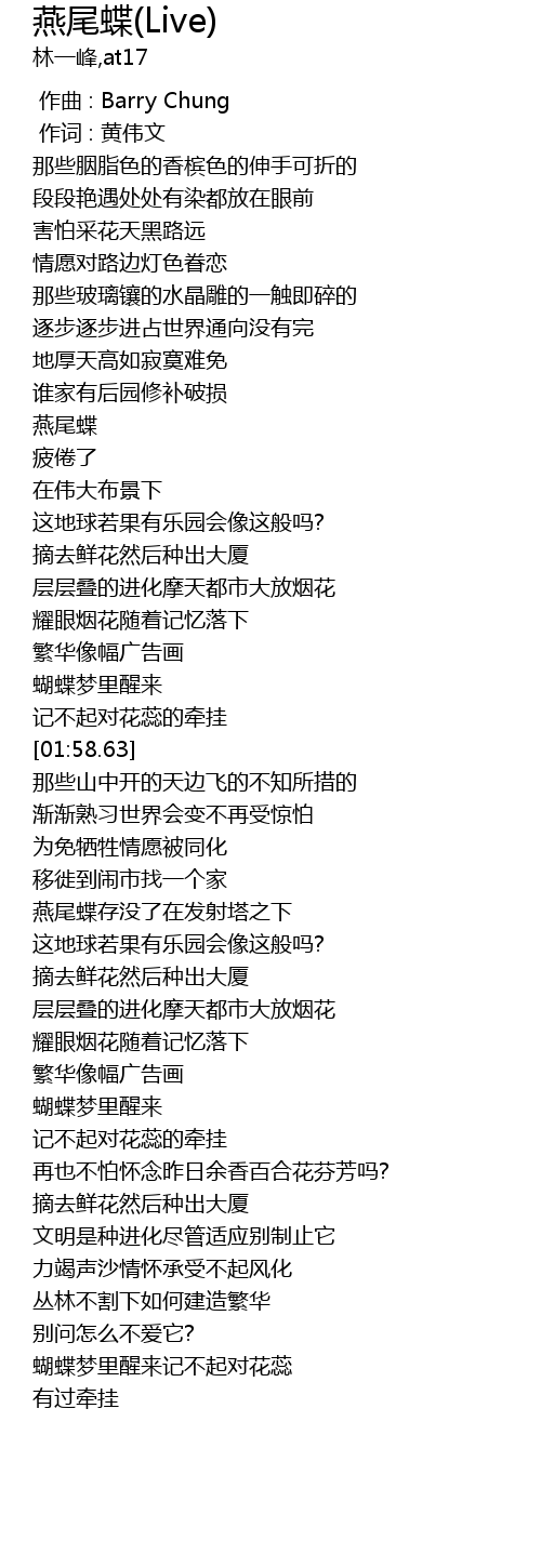 | [02:31.48] | 燕尾蝶存没了在发射塔之下 |
