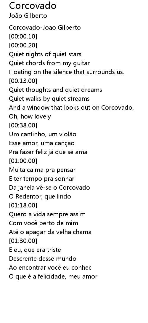 | [00:00.00] | Corcovado-Joao Gilberto |
