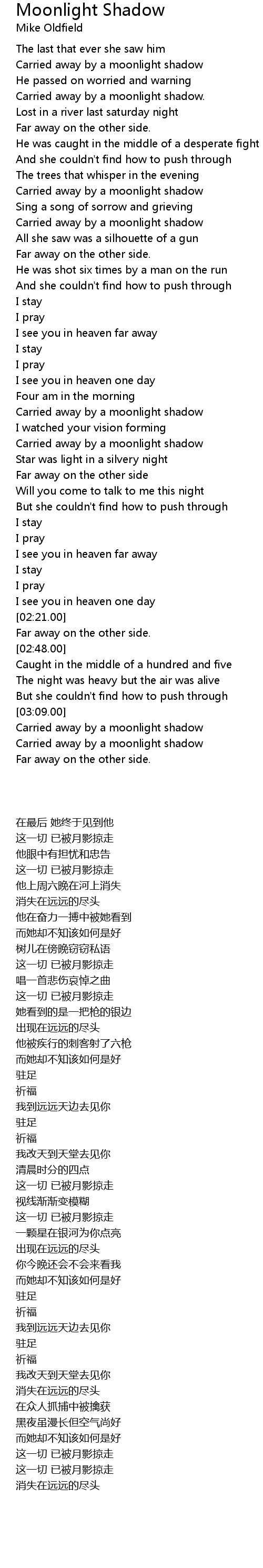 [00:18.00] Carried away by a moonlight shadow.