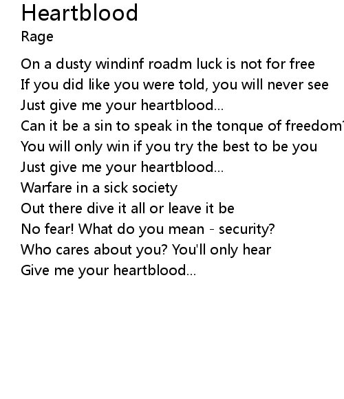 | Give me your heartblood... |