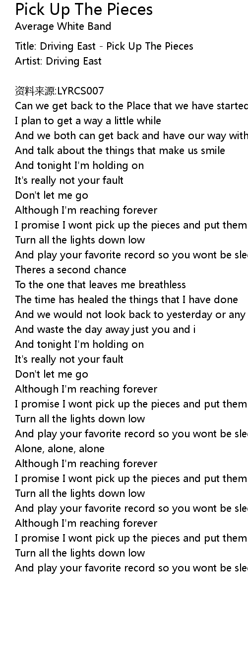 | Title: Driving East Pick Up The Pieces | |