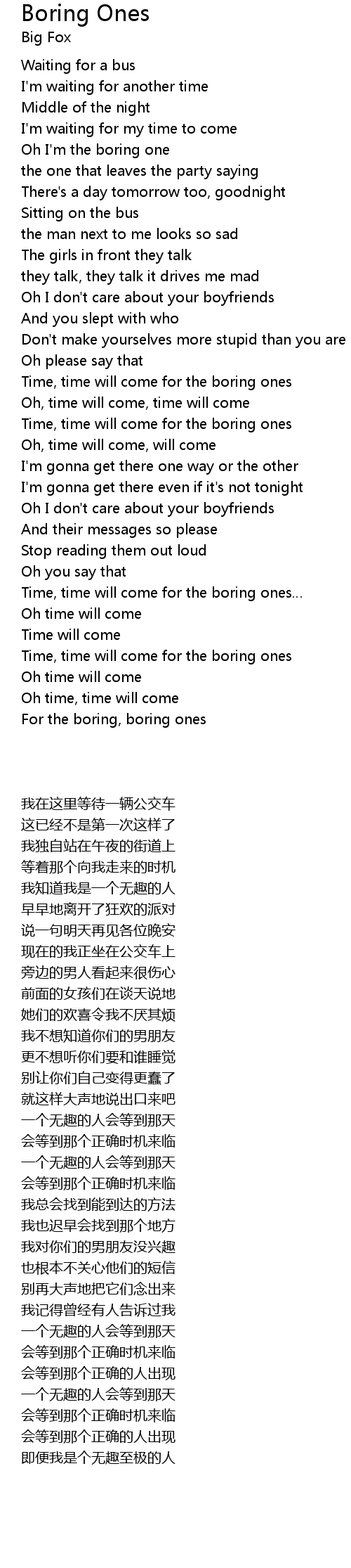 | [02:33.83] | Time, time will come for the boring ones |