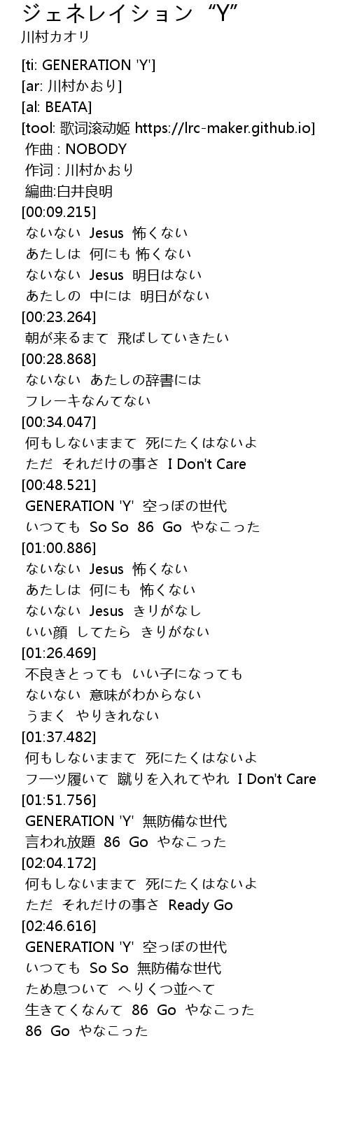 | [02:47.641] | GENERATION 'Y' 空っぼの世代 |