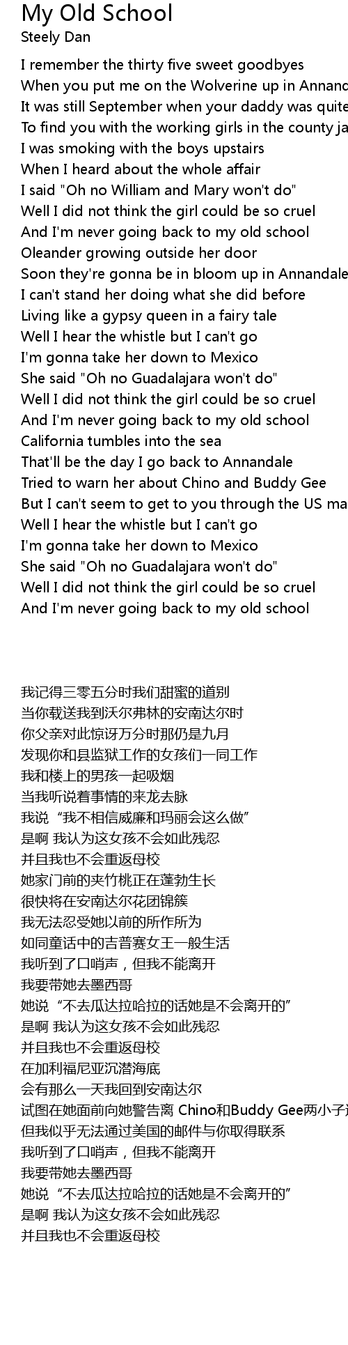 And I'm never going back to my old school |