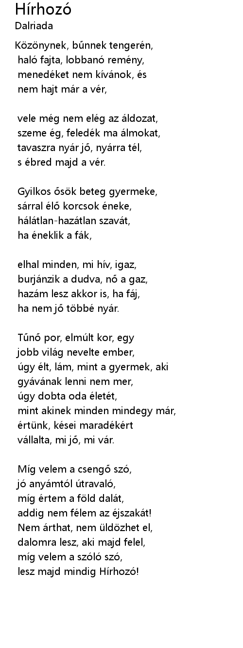 | Song | Hírhozó |
