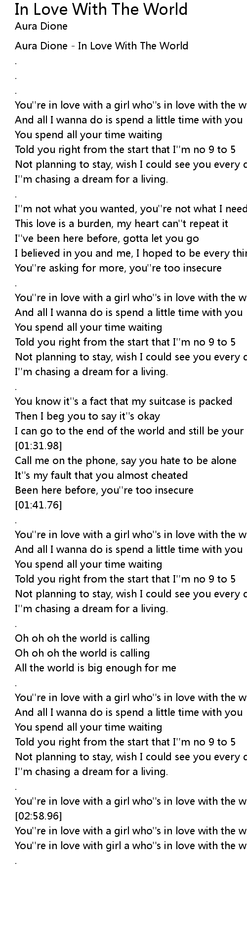 You''re in love with a girl who''s in love with the world |
