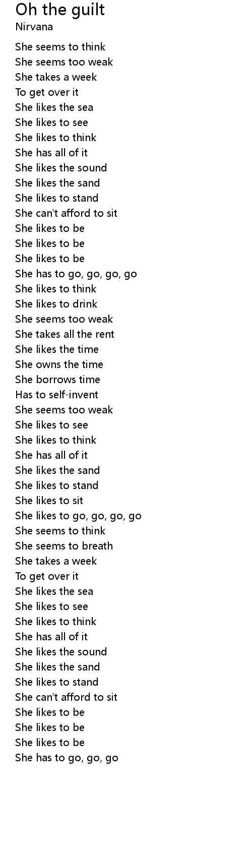 | Song | Oh the guilt |