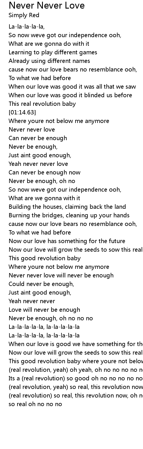 Never never love will never be enough |