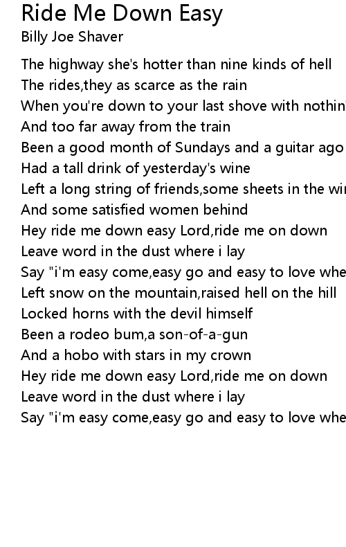 Hey ride me down easy Lord,ride me on down |