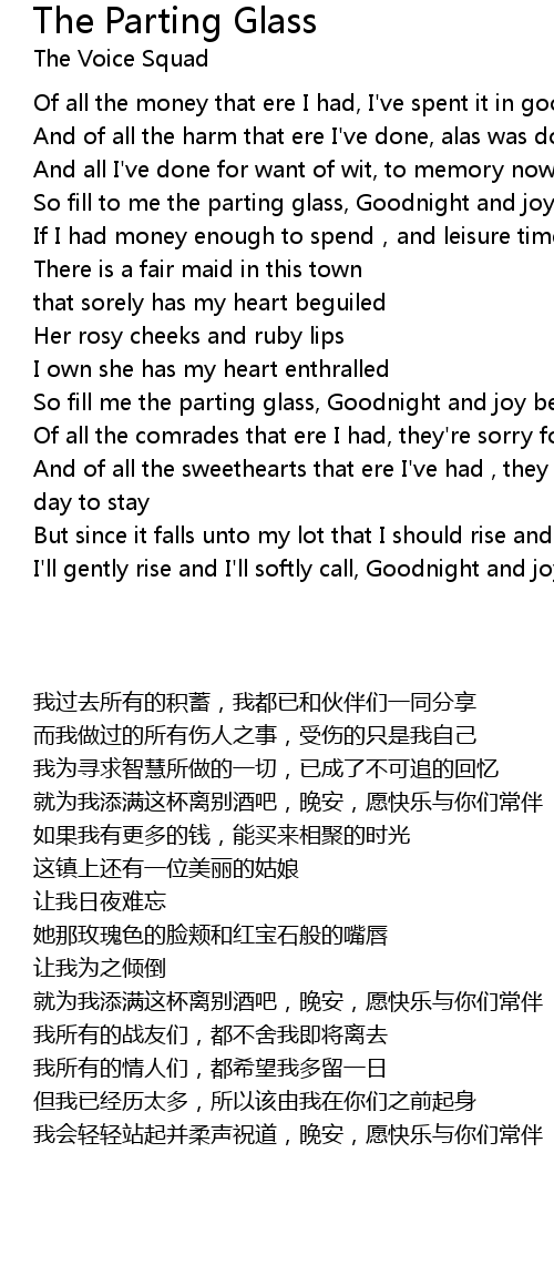 | [01:42.55] | So fill me the parting glass, Goodnight and joy be to you all |
