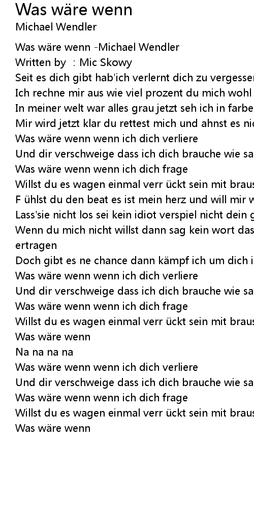 | [00:01.589] | Was w re wenn Michael Wendler |