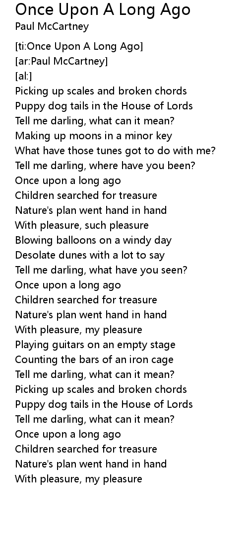 [ti:Once Upon A Long Ago] |