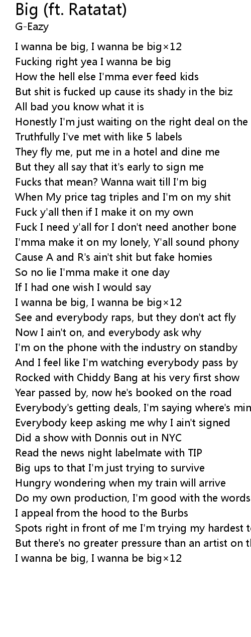 | [00:28.60] | Fucking right yea I wanna be big |
